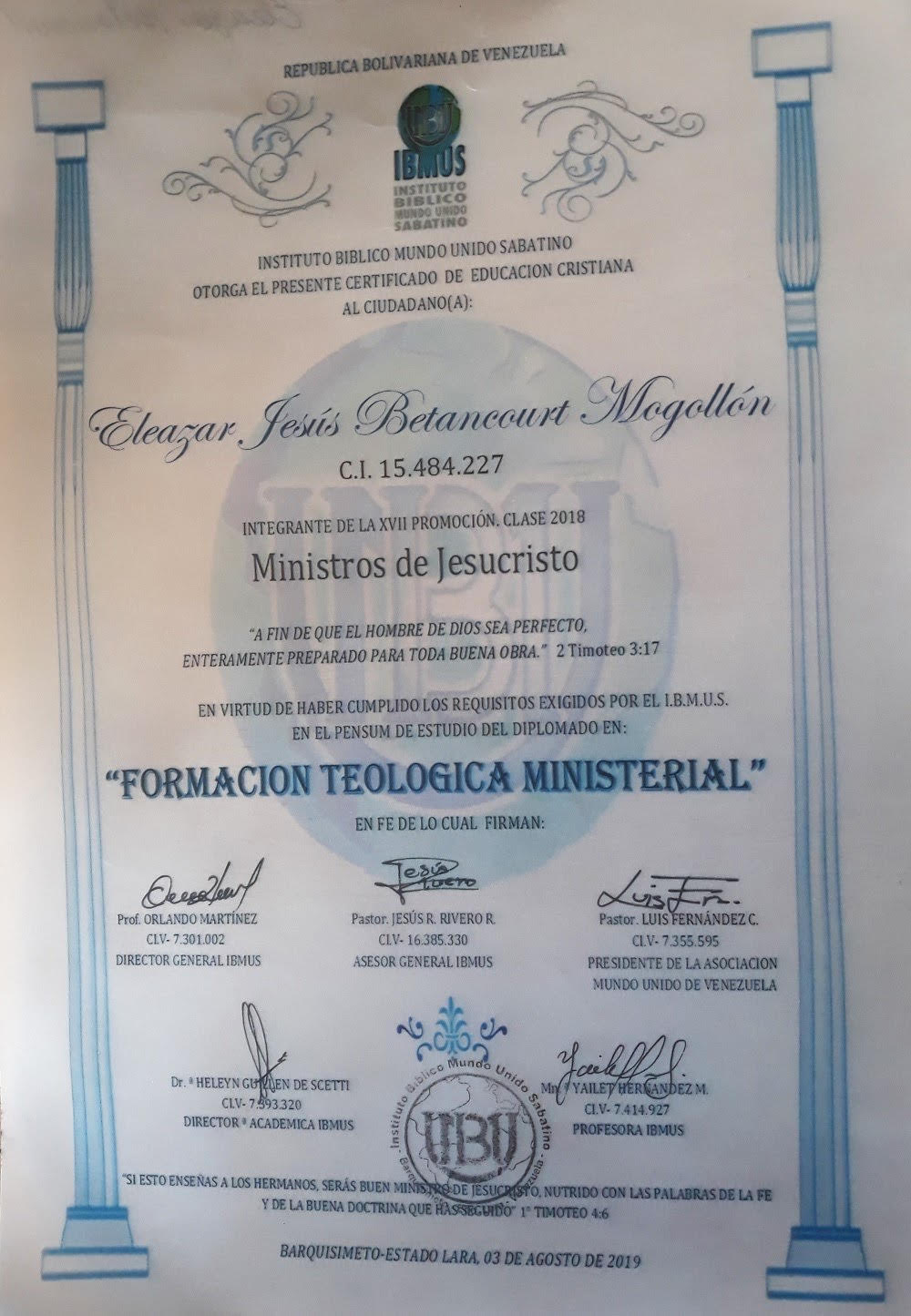 El egresado en Teología del IBMUS desarrolla una formación integral en Biblia, teología sistemática, historia de la iglesia y ministerio pastoral, enfocada en la aplicación de la Palabra de Dios en la vida personal, la iglesia y la sociedad.